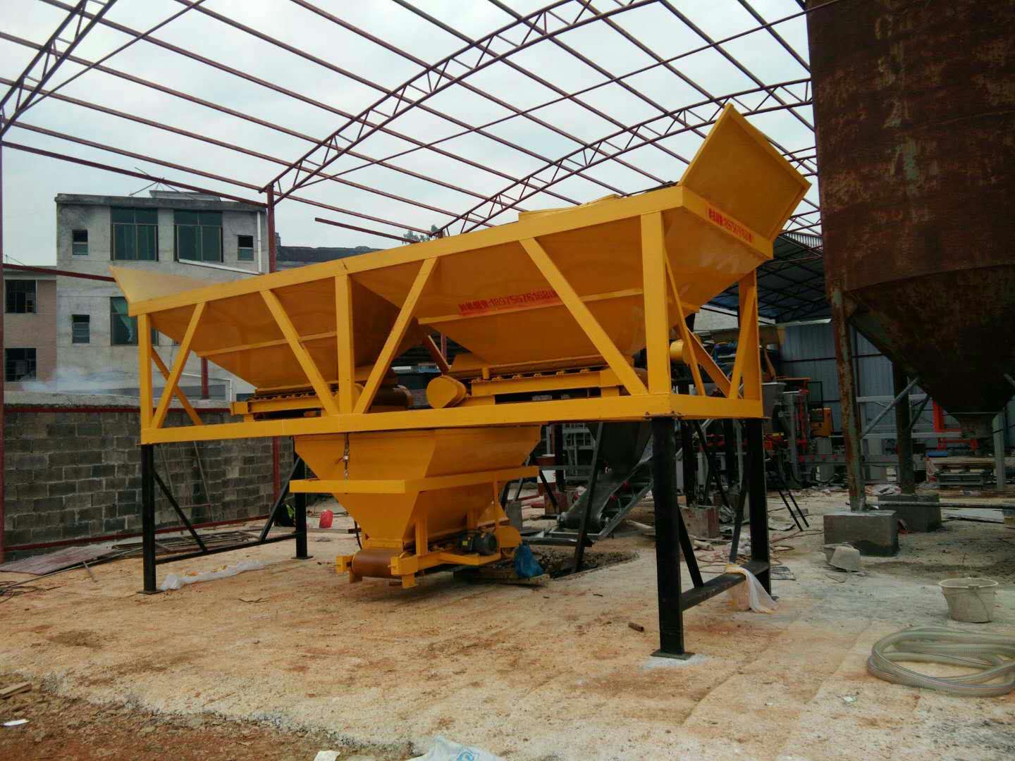 工作人員正在安裝配料倉