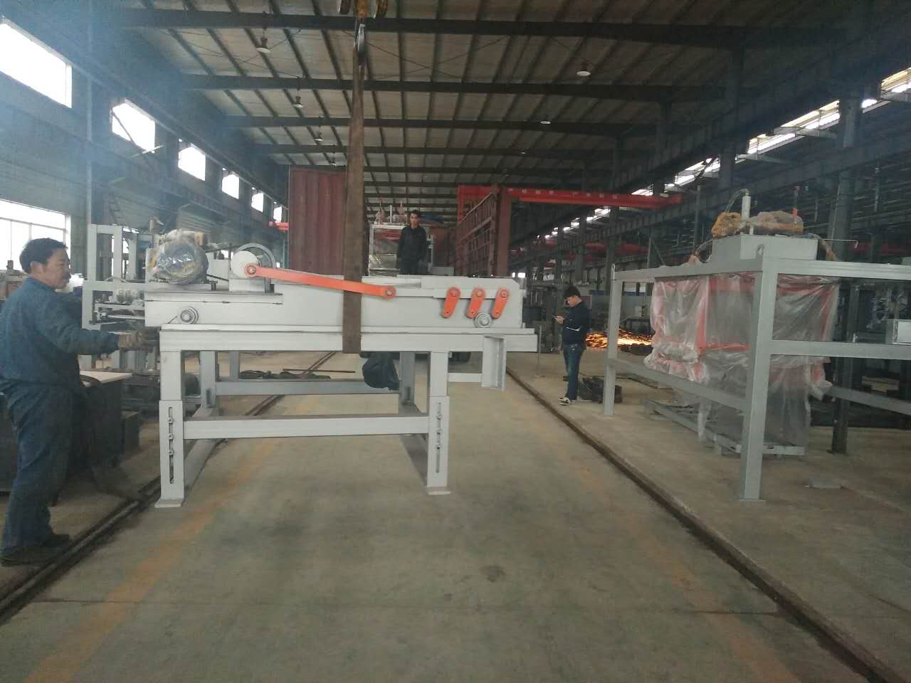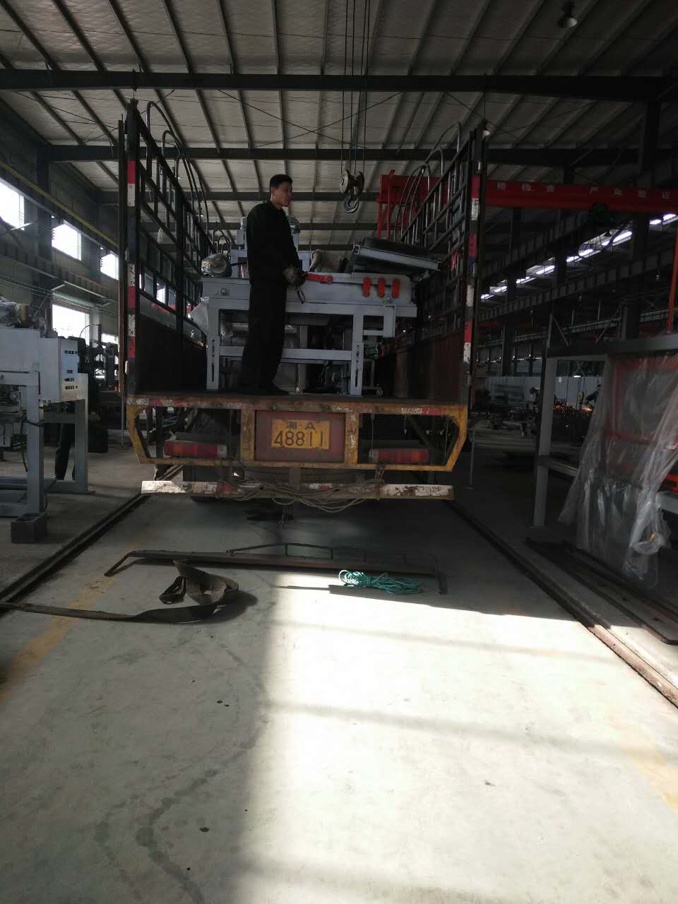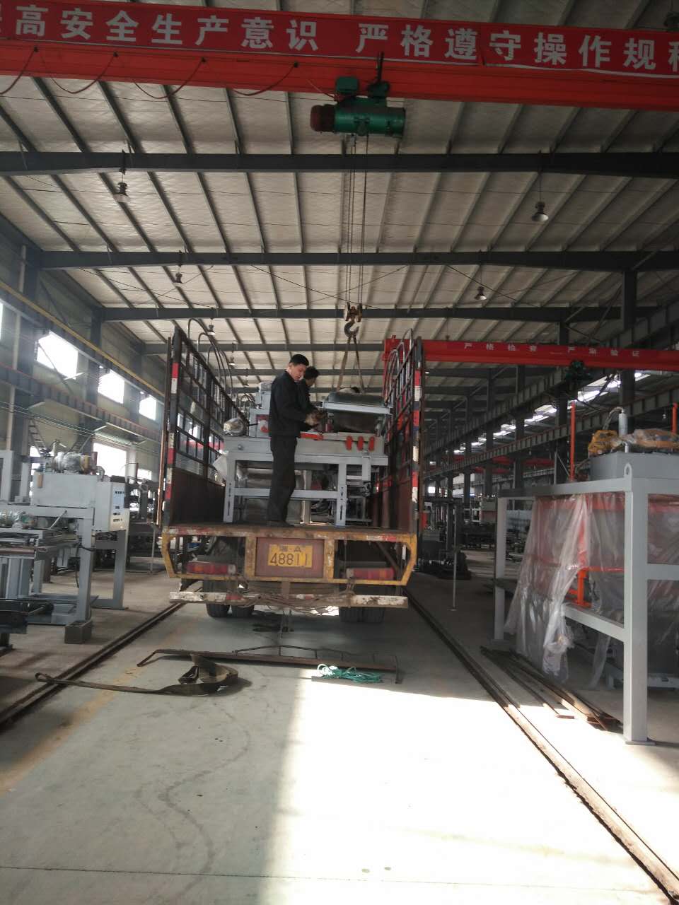 工作人員正在安裝配料倉